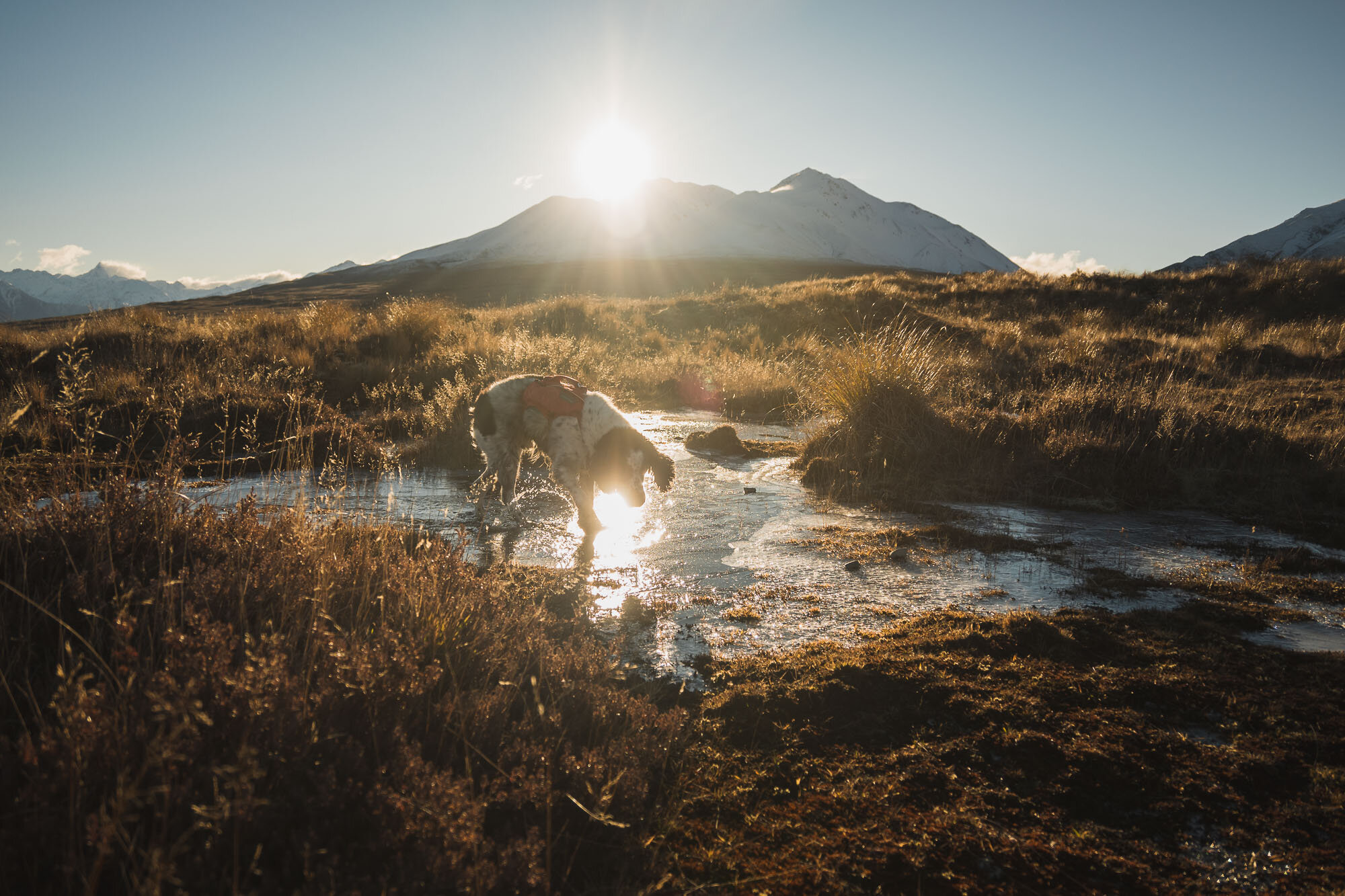 Ran into the lake only to find it was frozen solid, much to his disappointment. However, found a spring to jump into further along. Must have been freezing cold in there…